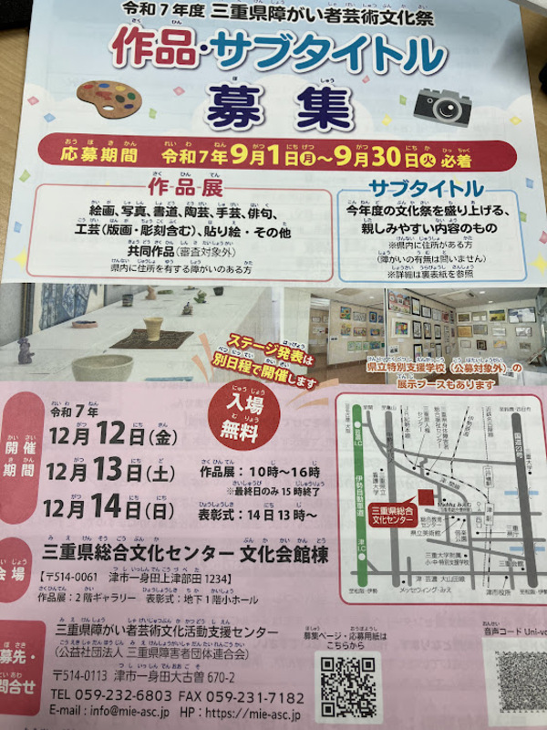 三重県障がい者芸術文化祭/松阪市障がい作品展へ向けて
