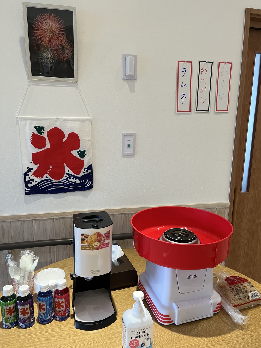 午後からは、夏祭り気分で「わたがし」「かき氷」「ラムネ」など、昔懐かしいデザートメニューを提供🍧