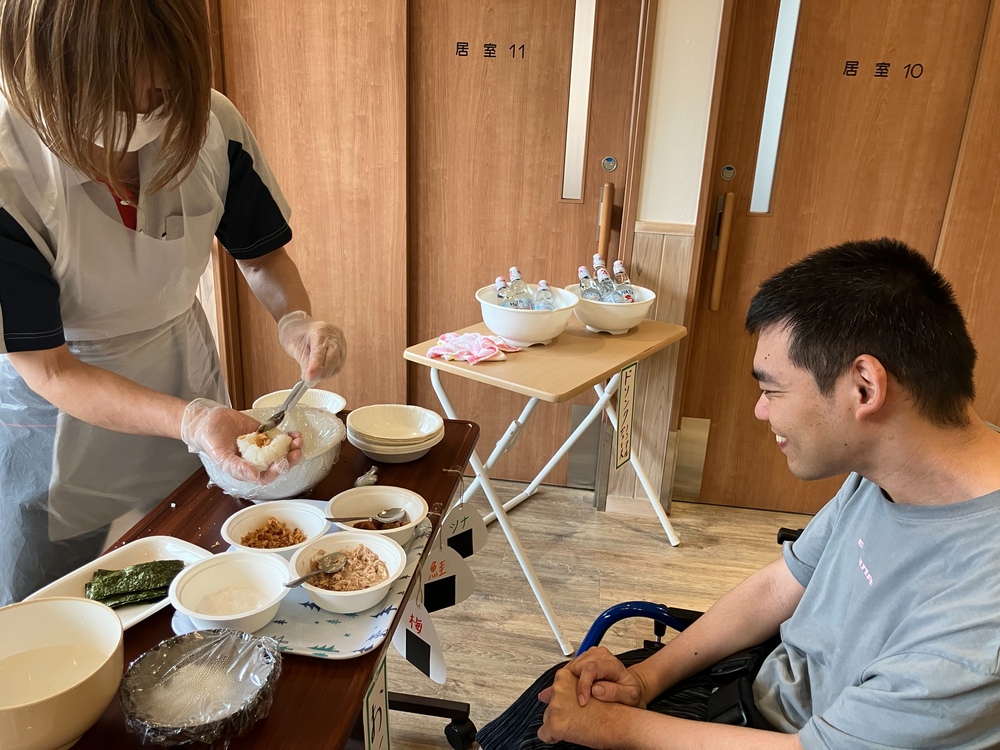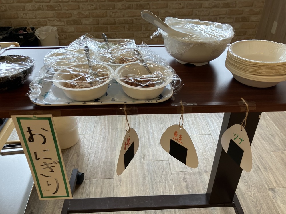 おにぎりは、職員の手作り、その場でリクエストを聞いて握っていきます🍙
