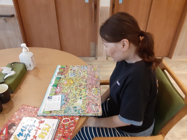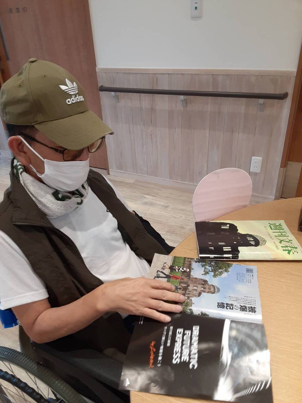 毎週、入居者様の見たい本、読みたい本のご希望をお聞きし、あれば図書館へ借りに向かっていますが、ときどき入居者様もお連れしています。