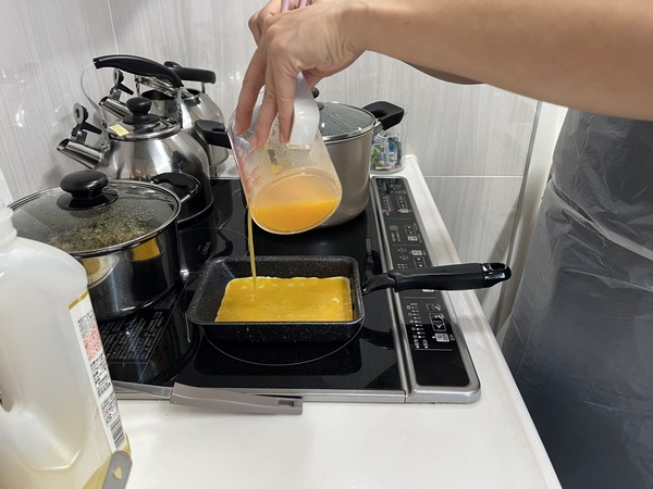 見事に焼けた厚焼き玉子の関西風玉子サンド完成👏