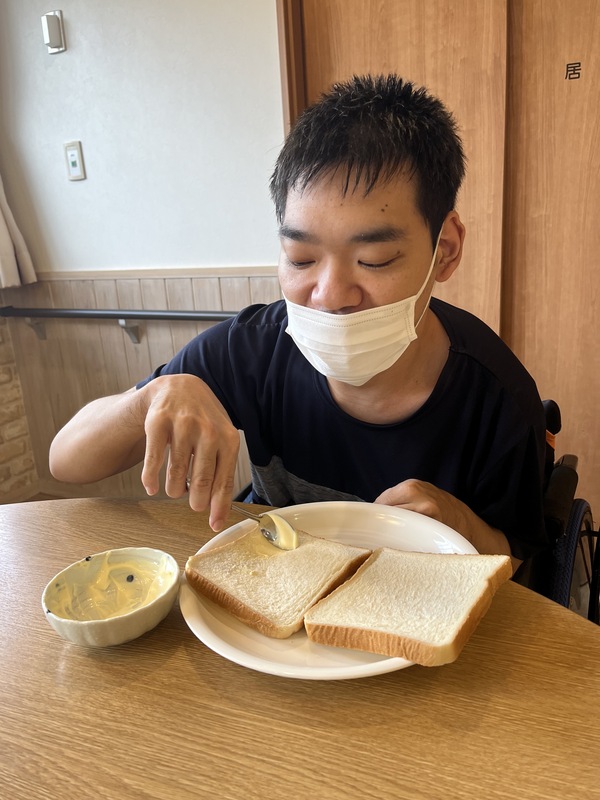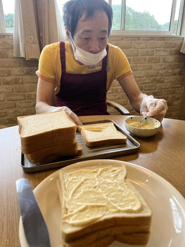 大大大の卵好き❤️N様たってのリクエストにお応えし、玉子サンドを入居者様と一緒に作りました☺️