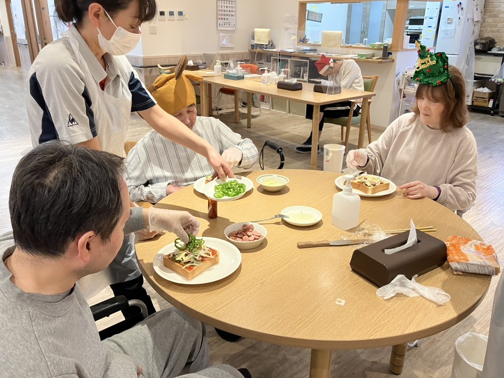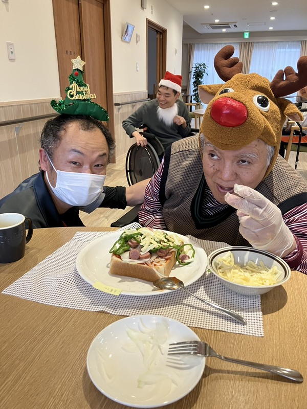 イベントでは、ランチにピザトースト、丸鶏チキン(ローソン)、コーンポタージュ、シャンメリー、おやつにケーキを提供いたしました🍽️